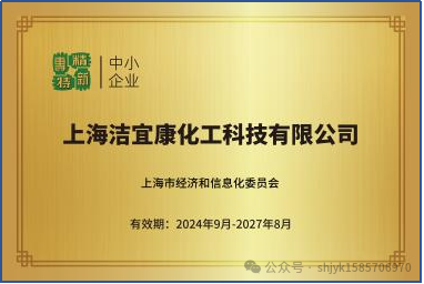 上海洁宜康化工科技有限公司成立于2005年,是由来自东华大学、青岛大学、南通大学等相关专业人士共同组建的科技型公司。本公司的主要技术力量由具有多年研发和实际工业化生产经验的博士和硕士以及正高级、高级工程师等组成,有着较强的自主研发能力和生产能力,并且本公司一直得到东华大学、青岛大学、上海大学、安徽工程大学和新疆大学等相关院校和技术中心的技术支持。