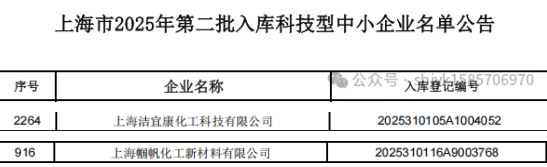 2025年上海市科技型中小企业评价结果揭晓,上海帼帆化工新材料有限公司与上海洁宜康化工科技有限公司凭借卓越的创新能力与科研实力双双入选。作为扎根上海的科技型企业,两家公司以持续的技术突破与知识产权积累,成为区域创新生态中的标杆力量。此次入选不仅是对其研发能力的权威认可,更彰显了上海在培育科技型中小企业集群、推动产业升级中的战略成效。