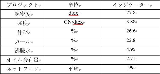 抗菌ナイロンDTYの指標(例として70D / 68F)。